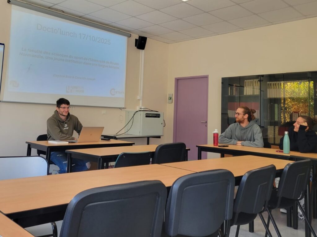 Pour l’ouverture de cette deuxième saison, Corentin Joseph a présenté, vendredi 17 octobre 2025, un article co-écrit avec Daphné Bolz : La faculté des sciences du sport de l’Université de Rouen Normandie. Une jeune institution dans une longue histoire. Ça a été l’occasion pour lui de nous présenter le contexte général de l’histoire des sciences du sport en France, mais aussi de nous partager plus spécifiquement l’histoire de notre chère UFR STAPS de Rouen.